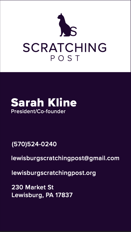 The scratching post is a non-profit organization called a cat cafe in Lewisburg, Pa, that cares for felines who are ready for adoption. However, it can also serve as a source of entertainment for people wanting to relax in the company of felines. The cats in the cafe have been rescued and live at the cafe to familiarize them with people in a nurturing environment. “Approximately 7.6 million companion animals enter animal shelters nationwide every year. Of those, approximately 3.4 million are cats.” Having paying visitors to cat cafes is also a great way to fund the humane care and rescue of cats so they don't just end up in shelters with no money for health care. The biggest thing that cat cafes are missing is attractive branding to spread awareness of this great opportunity.