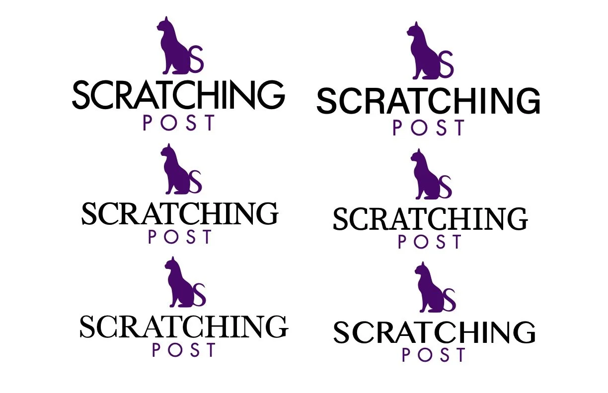 On the right is my final logo for The Scratching Post. I eliminated “The” because I didn’t feel like it was needed. The tail on the cat allows the icon to better relate to the text. I chose shades of purple for the color scheme because I think it portrays calmness, and that’s what a cat cafe does to me!