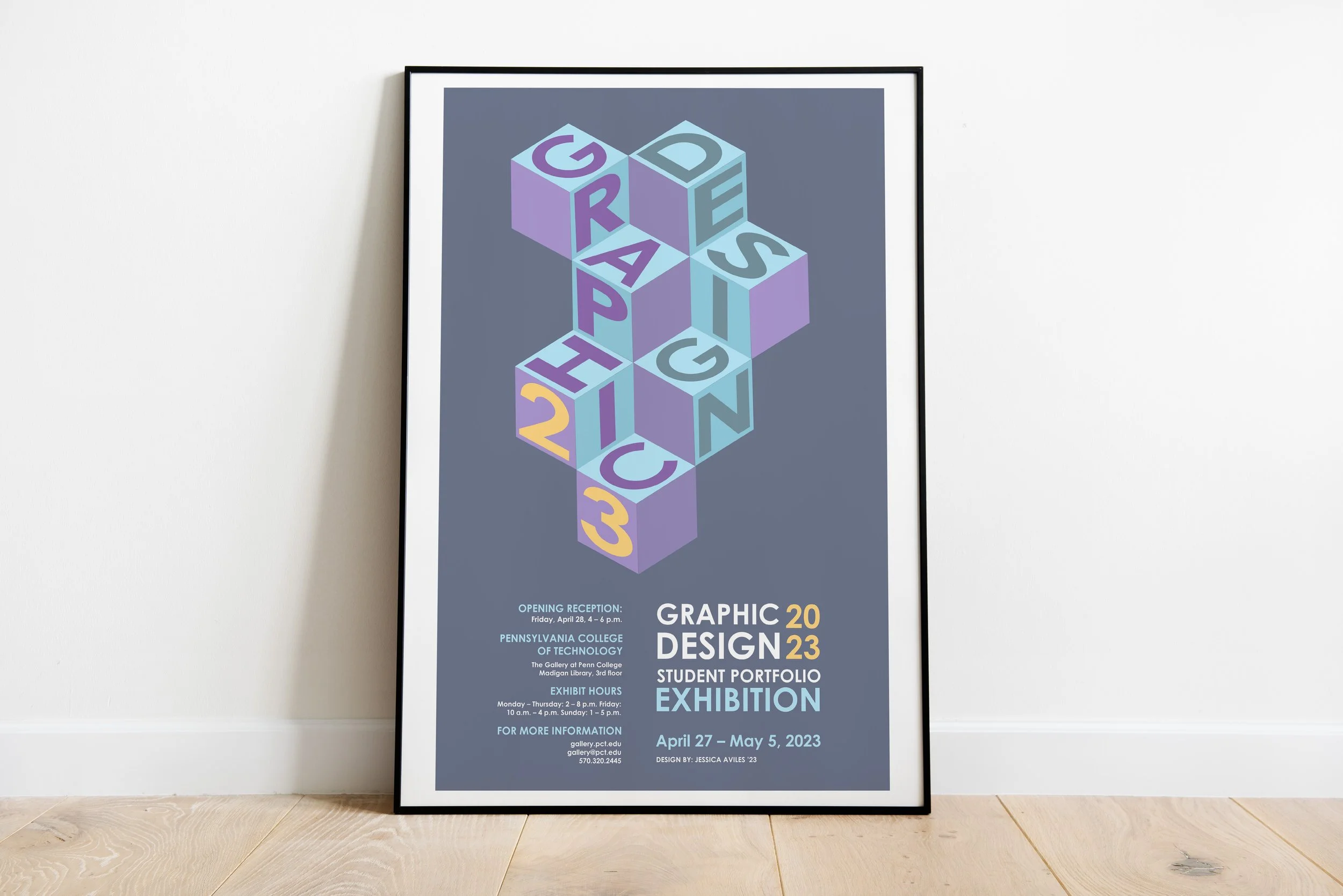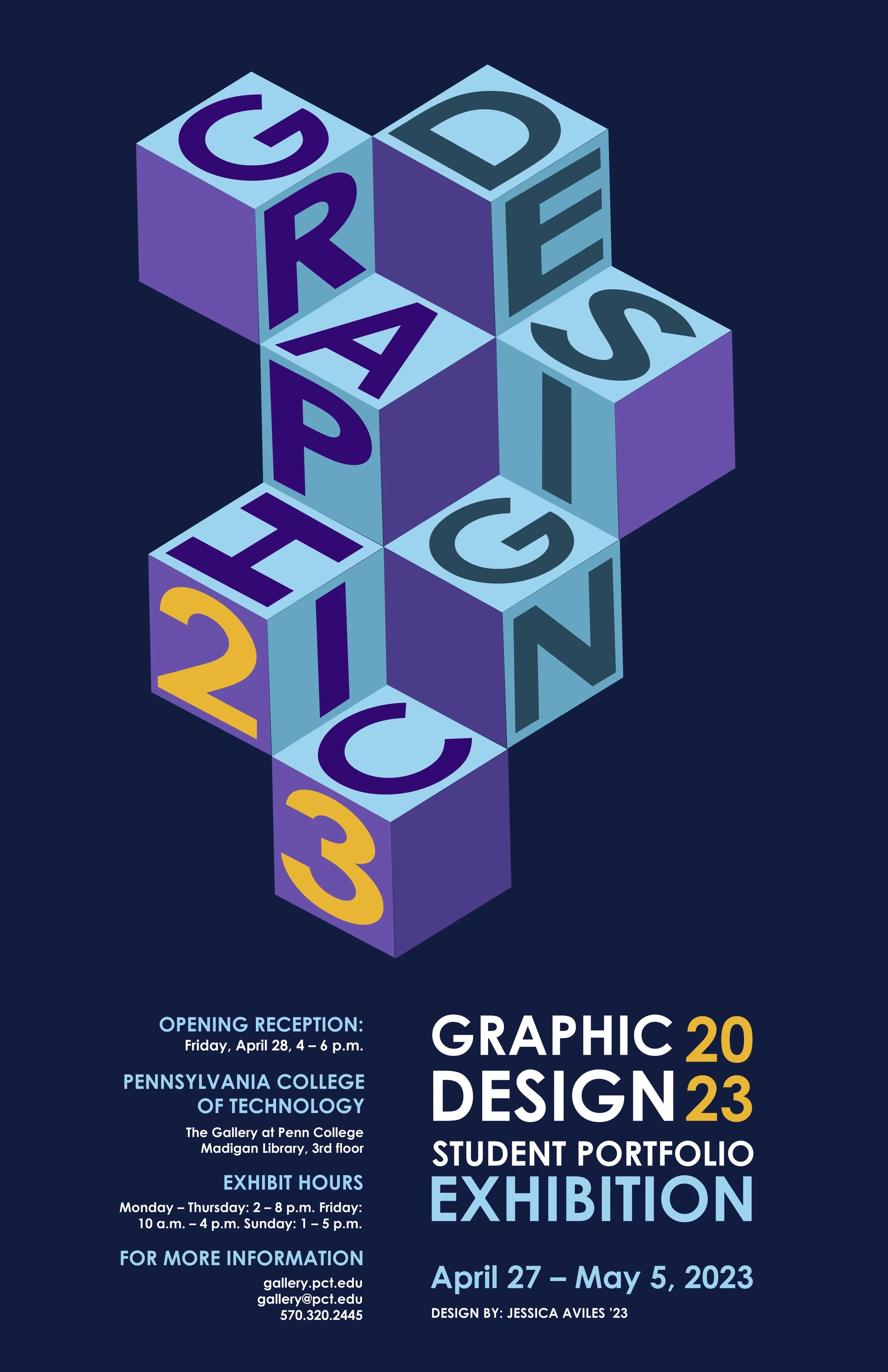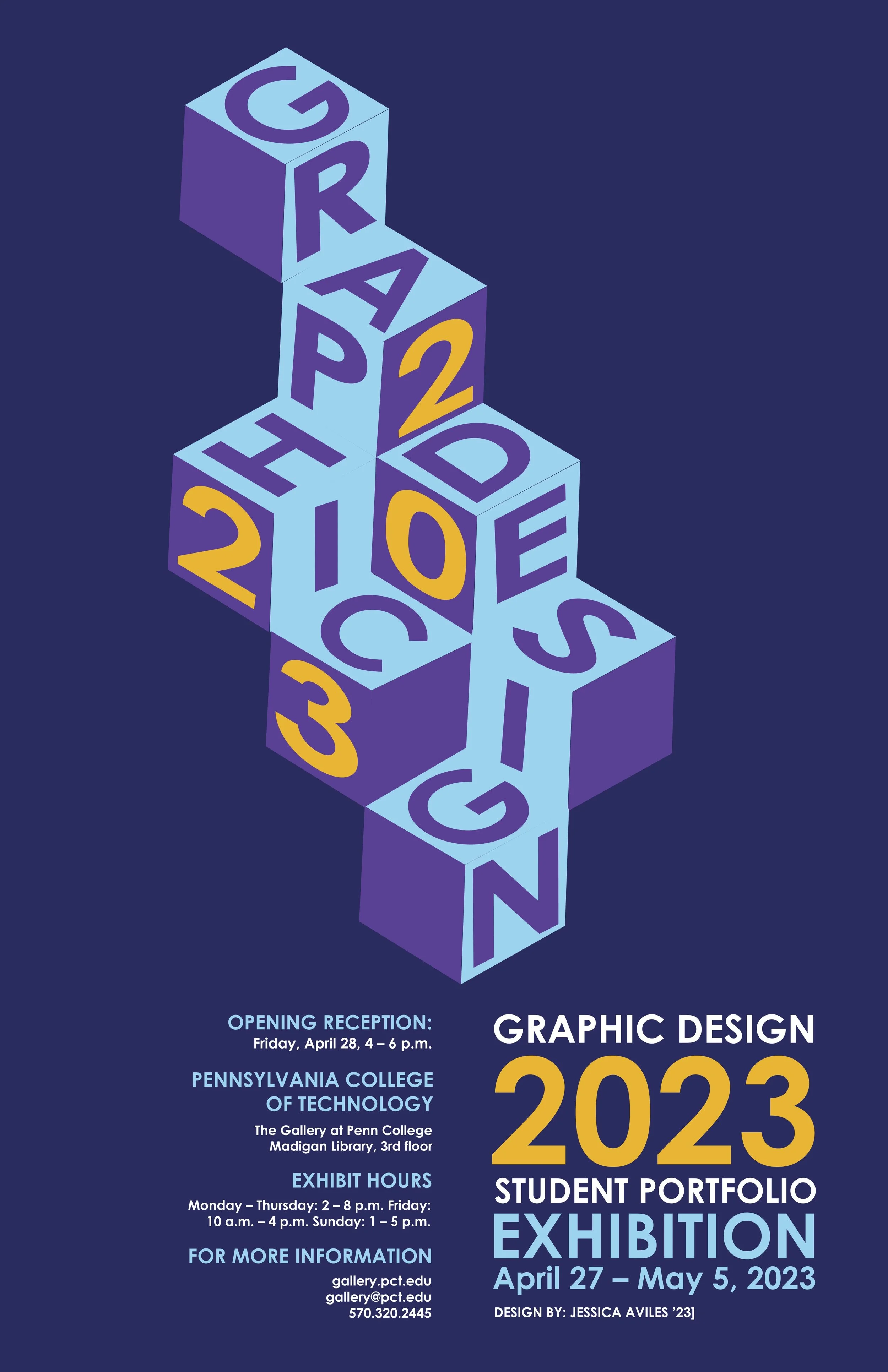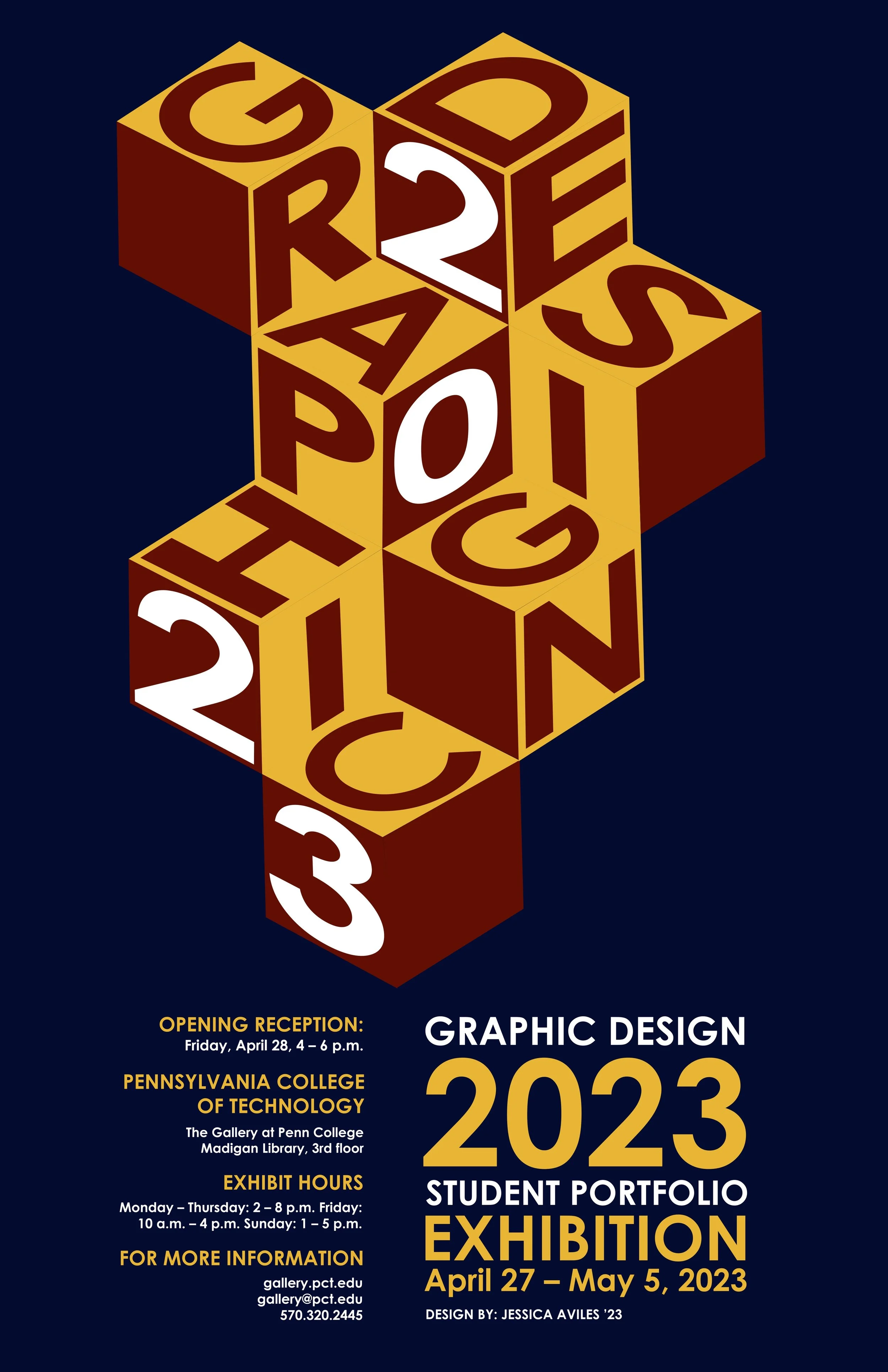This is a poster for the senior portfolio exhibition for the year 2023. The first two images are in-process designs of the poster.